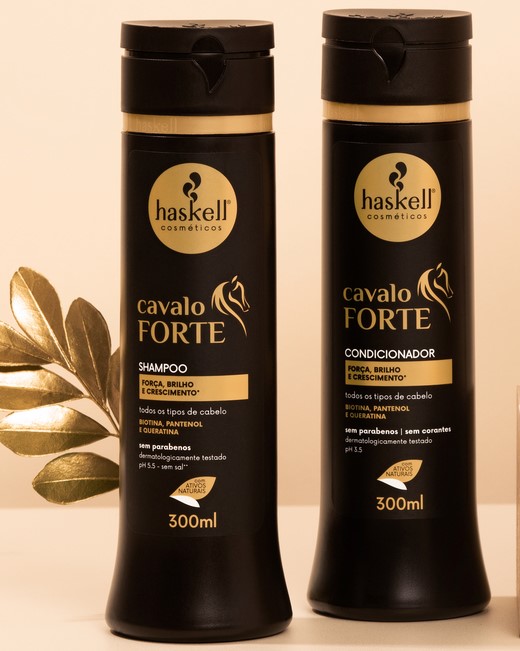 Como utilizar o Kit Pré-Treino + Cavalo Forte Agite antes de usar por 5 segundos. Nos cabelos secos ou úmidos, aplique o Fluido Capilar Pré-Treino e espalhe o produto com as mãos ou com o auxílio de uma escova. Deixe agir durante a prática da atividade física. Ao final do treino, é hora de lavar os cabelos com o Shampoo Cavalo Forte. Nos cabelos molhados, aplique o shampoo, massageando o couro cabeludo em suaves movimentos circulares. Enxágue bem. Se necessário, repita a aplicação. Após o shampoo, aplique o Condicionador Cavalo Forte uniformemente, do comprimento às pontas. Massageie suavemente e deixe agir por 1 minuto. Enxágue bem.